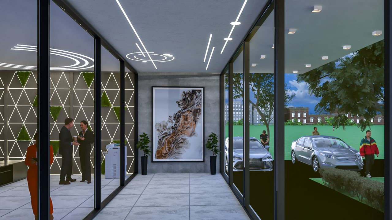 It can be installed in a lobby, reception, conference room, collaboration area etc